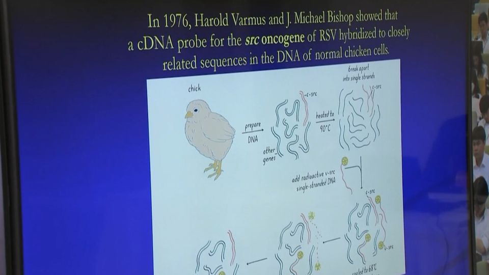 โดยทรงบรรยายพระราชทานในหัวข้อที่ 3 oncogenes and growth control ยีนมะเร็งและการควบคุมการเจริญเติบโตของเซลล์ และหัวข้อที่ 4 tumor suppressor genes ยีนยับยั้งการเกิดมะเร็งและการควบคุมวัฏจักรของเซลล์ ต่อจากเรื่องกระบวนการและขั้นตอนของการเกิดมะเร็งและชีววิทยาของเซลล์มะเร็ง