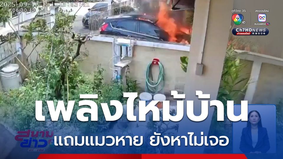 สนามข่าวเสาร์-อาทิตย์ - เกิดเหตุระทึก เพลิงไหม้บ้านหนุ่มสายแคมปิง ทำรถเก๋ง-รถจักรยานยนต์วอด แถมแมวที่เลี้ยงก็ตกใจวิ่งหายไป ยังหาไม่เจอ