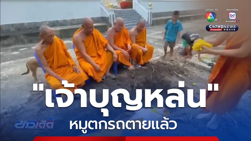 ข่าวเด็ด 7 สี - ที่จังหวัดสระบุรี "เจ้าบุญหล่น" หมูหนักกว่า 100 กิโลกรัม ที่ตกลงมาจากรถที่กำลังจะไปโรงเชือดตายแล้ว พระก็ได้ทำพิธีสวดส่งวิญญาณให้