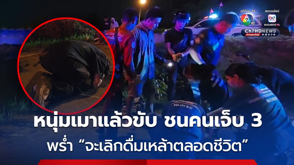 หนุ่มอายุ 24 ปี ร้องไห้ พร่ำ “จะเลิกดื่มเหล้าตลอดชีวิต” กราบขอโทษเหยื่อ หลังขับรถยนต์ชนรถจักรยานยนต์เจ็บสาหัส 3 ราย
