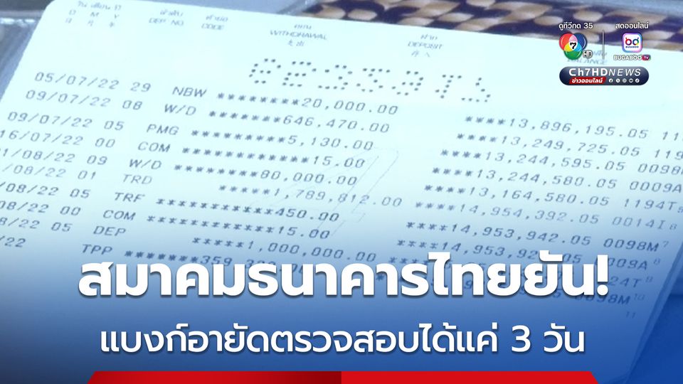 สมาคมธนาคารไทย ยัน แบงก์มีอำนาจระงับวงเงินต้องสังสัย(บัญชีม้า) ไว้ตรวจสอบแค่ 3 วัน หากเป็นบัญชีม้า ที่มีหมายตำรวจ ระงับเพิ่มอีก 7 วัน - ยืนยัน ระบบการเงินมีเสถียรภาพดี พบ ปชช. เบิก-จ่ายมากผิดปกติแค่ 1-2 สาขา