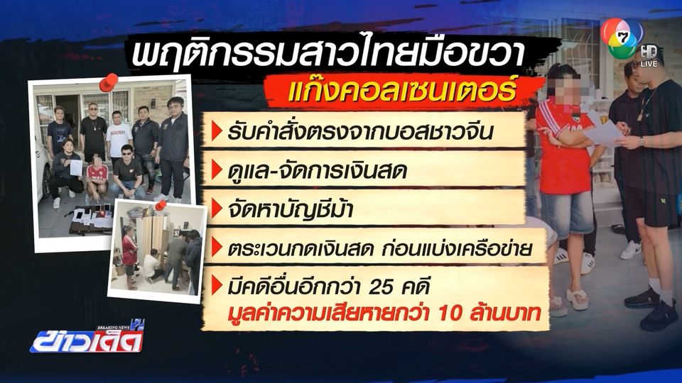 ข่าวเด็ดภาคดึก - ตำรวจ เปิดปฏิบัติการเด็ดหัวแก๊งคอลเซ็นเตอร์ จับกุมหญิงมือขวาของ "บอสชาวจีน" มีหน้าที่คุมเงินสด จัดหาบัญชีม้าเพื่อใช้ฟอกเงิน มีส่วนพัวพันคดีหลอกลงทุนผ่านทางออนไลน์หลายคดี