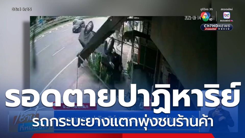 เช้านี้ที่หมอชิต - กล้องวงจรปิดจับภาพนาทีชีวิต รถกระบะยางแตก เสียหลักพุ่งชนร้านค้าเต็ม ๆ แต่ทุกคนที่นั่งมาในรถ 5 คน รอดตายราวปาฏิหาริย์