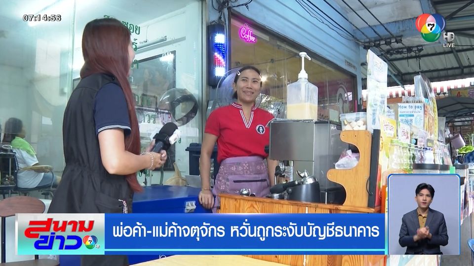 สนามข่าว 7 สี - กระแสข่าวถูกธนาคารระงับบัญชี ลุกลามสู่อาชีพค้าขาย ทีมข่าวไปสอบถามพ่อค้า-แม่ค้า ย่านจตุจักร พบหลายคนหวั่นใจกลัวถูกระงับบัญชี เพราะไม่รู้ว่าลูกค้าที่โอนเงินมาเป็นบัญชีม้าหรือไม่