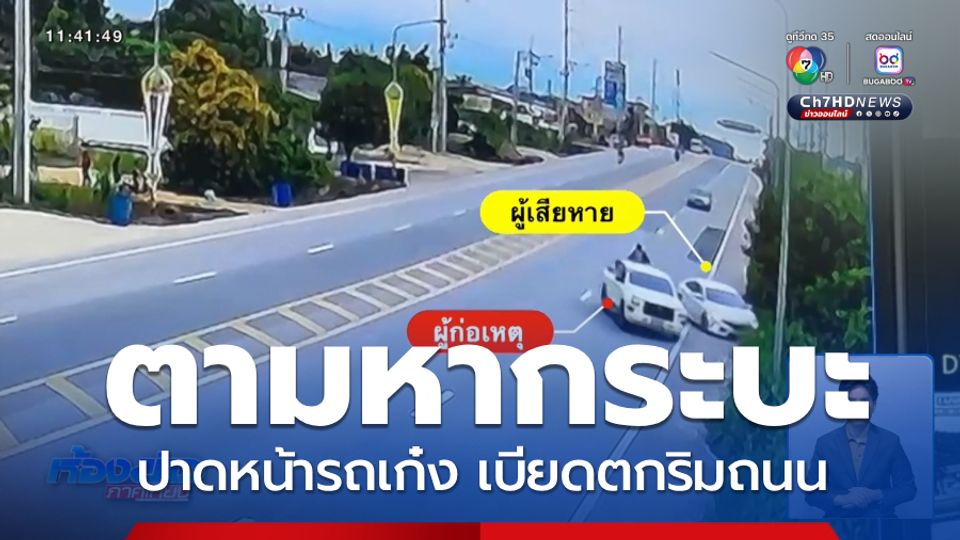 ห้องข่าวภาคเที่ยง - รถกระบะหักพวงมาลัยข้ามเลน ปาดหน้ารถเก๋งอย่างกระทันหัน จนเบียดรถเก๋งตกริมถนน แล้วขับรถหนีไปหน้าตาเฉย