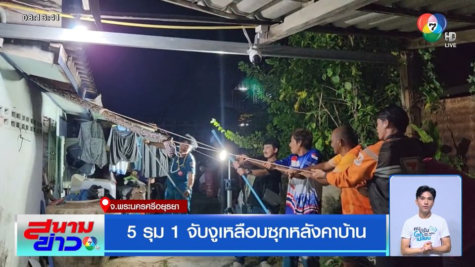 สนามข่าว 7 สี - งูเหลือมตัวใหญ่ ยาว บุกเข้าบ้านชาวบ้าน งานนี้ต้องใช้คนถึง 5 คนช่วยกันจับงูเหลือม ด้านเจ้าของบ้านบอก งวดนี้ต้องซื้อเลขที่บ้าน รับรองไม่พลาดแน่