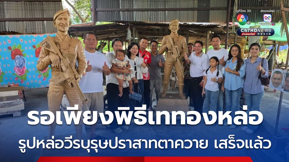 โดยเมื่อกำหนดวันแล้ว ทางโรงหล่อก็จะทำขั้นตอนที่เหลือ คือการต่อชนวนเข้าแบบปูนรัดแม่พิมพ์ ขึ้นเตาเผาพิมพ์ ใช้เวลา 2 วัน จากนั้นก็จัดทำพิธีหล่อหลอมมวลสารให้ละลาย และพิธีเททองหล่อ ก็เป็นอันเสร็จ จากนั้นก็สามารถส่งมอบรูปหล่อของวีรบุรุษตาควายไปตั้งที่วัดได้เลย ซึ่งทางโรงหล่อก็ได้ช่วยเหลือทำบุญไปกับทางทหารกล้าไปด้วย เพราะโรงหล่อรับงานแค่ 2 แสนบาท แต่คาดว่ารูปหล่อนี้ราคาประมาณ 4 แสนบาท จนได้มีญาติของ ส.อ.อัมรินทร์ ผาสุก วีรบุรุษตาเมือน จ.สุรินทร์ ซึ่งเสียชีวิตเมื่อวันที่ 28 ก.ค. 68 ที่ผ่านมาได้มาขอให้ทางโรงหล่อรับทำรูปหล่อโลหะในราคานี้ ซึ่งทางโรงหล่อก็รับปากจะทำให้หลังจากที่เสร็จจากรูปหล่อวีรบุรุษปราสาทตาควายแล้ว