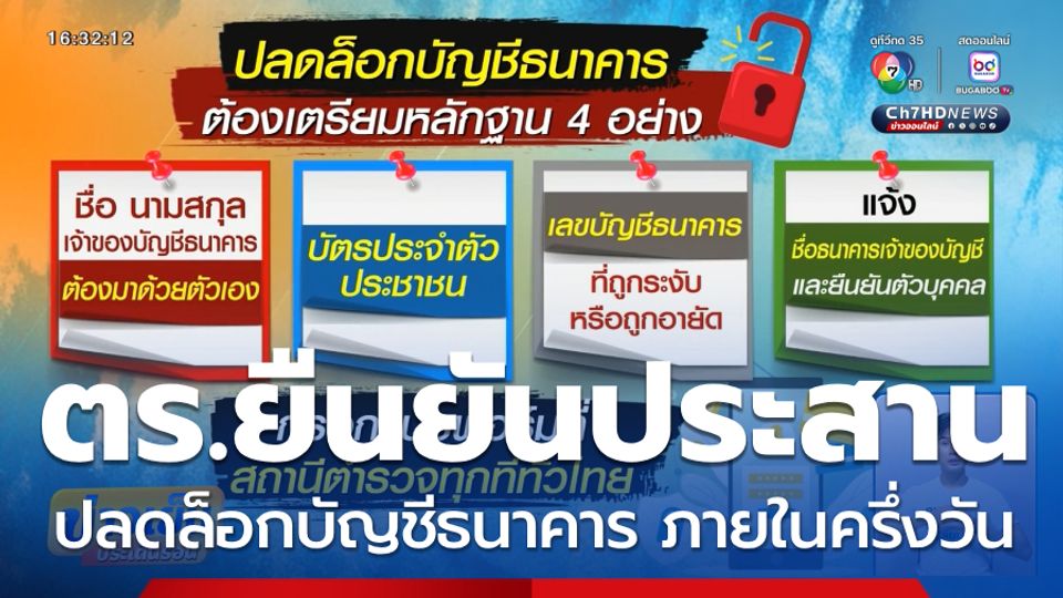 เป็นคำยืนยันของ ผบ.ตร. ว่าตำรวจในพื้นที่ ต้องเป็นที่พึ่งรับแจ้งความกรณีปลดล็อกบัญชีธนาคาร โดยเตรียมหลักฐาน 4 อย่าง คือ