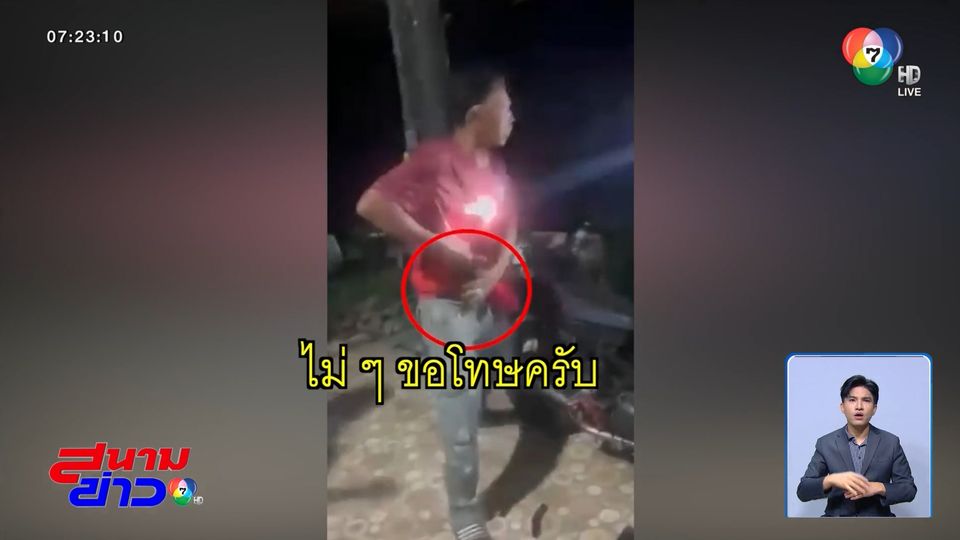 สนามข่าว 7 สี - กำนันในจังหวัดชุมพร ไปเตือนลูกบ้านแต่งรถเสียงดัง รบกวนชาวบ้าน ระหว่างนั้นได้ยินคำพูดผิดหู จึงควักปืนออกมาข่มขู่