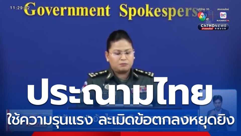 ต่อมา "พลโทหญิง มาลี โสเจียตา" โฆษกกระทรวงกลาโหมของกัมพูชา แถลงซ้ำอีกประณามว่าไทยใช้ความรุนแรง ละเมิดข้อตกลงหยุดยิง ทำให้ชาวกัมพูชาบาดเจ็บ 28 คน บางคนสาหัสถึงขั้นหมดสติ พร้อมทั้งอ้างว่าไทยใช้กฎอัยการศึกในอธิปไตยกัมพูชา เป็นการล่วงละเมิดอย่างร้ายแรงของกัมพูชาและกฎหมายระหว่างประเทศ ทำให้พี่น้องประชาชนชาวกัมพูชา ซึ่งเป็นเจ้าของที่ดิน ได้ร่วมกันต่อต้านและตอบโต้ โดยสันติวิธี