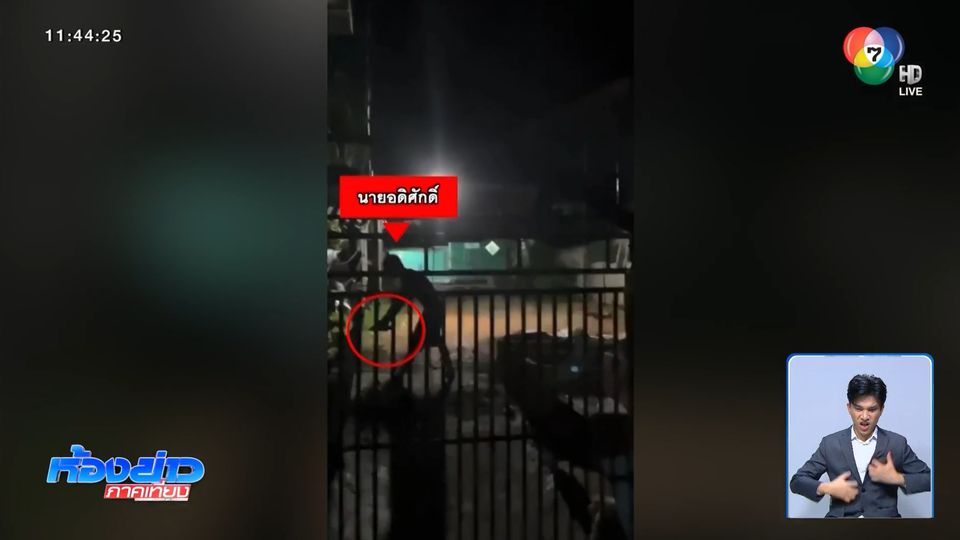 คลิปภาพที่เจ้าของบ้าน ที่ตำบลหัวเขา อำเภอสิงหนคร จังหวัดสงขลา ต้องตื่นตกใจตั้งแต่ 05.00 น. เมื่อวานนี้ ก่อนลุกขึ้นมาดู พบว่า นายอดิศักดิ์ เพื่อนบ้านคลุ้มคลั่ง ใช้มีดพร้า 2 เล่ม ฟันประตูรั้ว แถมยังพยายามบุกเข้าไปในบ้าน เมื่อเข้าไม่ได้ก็ยืนลับมีดโชว์ พร้อมบ่นพึมพำ