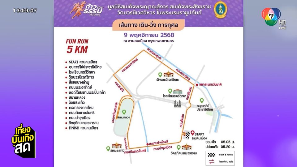 เที่ยงบันเทิงสด - เอาใจสายบุญและสายวิ่ง กับกิจกรรมการวิ่งการกุศล "ก้าวด้วยธรรม ครั้งที่ ๙" เปิดรับสมัครแล้ว มาร่วมเดิน-วิ่ง เพื่อสร้างกุศลและสุขภาพดีไปพร้อมกัน !