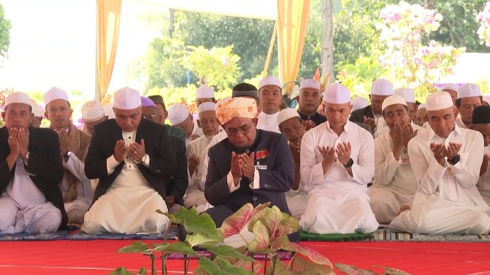 เวลา 07.44 น. วันนี้ สมเด็จพระกนิษฐาธิราชเจ้า กรมสมเด็จพระเทพรัตนราชสุดา ฯ สยามบรมราชกุมารี เสด็จพระราชดำเนินไปยังลานเฟื่องฟ้า ทักษิณราชนิเวศน์ อำเภอเมืองฯ จังหวัดนราธิวาส ทรงร่วมพิธีบำเพ็ญกุศลทางศาสนาอิสลามแก่ผู้ล่วงลับภายในสุสานเฟื่องฟ้า มี นายสู-ไฮมี มาเกะ โต๊ะอิหม่ามประจำมัสยิดบ้านเขาตันหยง นำผู้ร่วมพิธีฯ ประกอบด้วย ผู้นำทางศาสนา ผู้นำท้องถิ่น และชาวบ้านจากบ้านเขาตันหยง บ้านโคกสยา และบ้านตือลาฆอปาลัส ตำบลกะลุวอเหนือ สวดขอพรจากพระผู้เป็นเจ้า เพื่ออุทิศส่วนกุศลแก่บรรพบุรุษของราษฎรบ้านเขาตันหยง จากนั้นร่วมกันสวดดูอาร์ ถวายพระพรสมเด็จพระนางเจ้าสิริกิติ์ พระบรมราชินีนาถ พระบรมราชชนนีพันปีหลวง, พระบาทสมเด็จพระเจ้าอยู่หัว, สมเด็จพระนางเจ้าฯ พระบรมราชินี และพระบรมวงศานุวงศ์