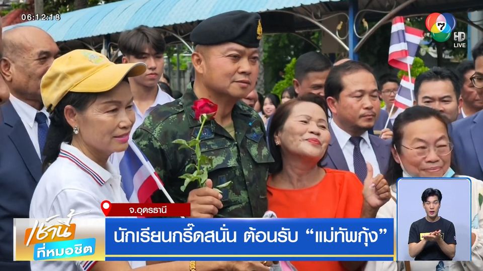 เช้านี้ที่หมอชิต - ดังยิ่งกว่าดาราเกาหลี บิ๊กกุ้ง แม่ทัพภาคที่ 2 เมื่อวาน ไปออนทัวร์บรรยายพิเศษ ปลุกความรักชาติ ที่โรงเรียนในจังหวัดอุดรธานี ปรากฏว่าแฟนคลับรุ่นเล็ก รุ่นใหญ่ ส่งเสียงกรี๊ดดังสนั่น