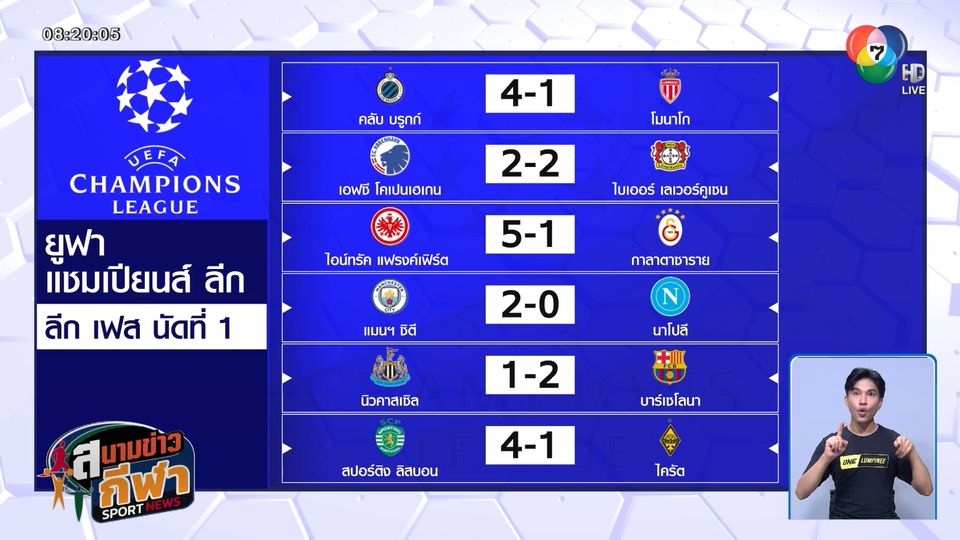 สนามข่าวกีฬา - ผลฟุตบอลยูฟา แชมเปี้ยนส์ ลีก รอบลีกเฟส นัดแรก