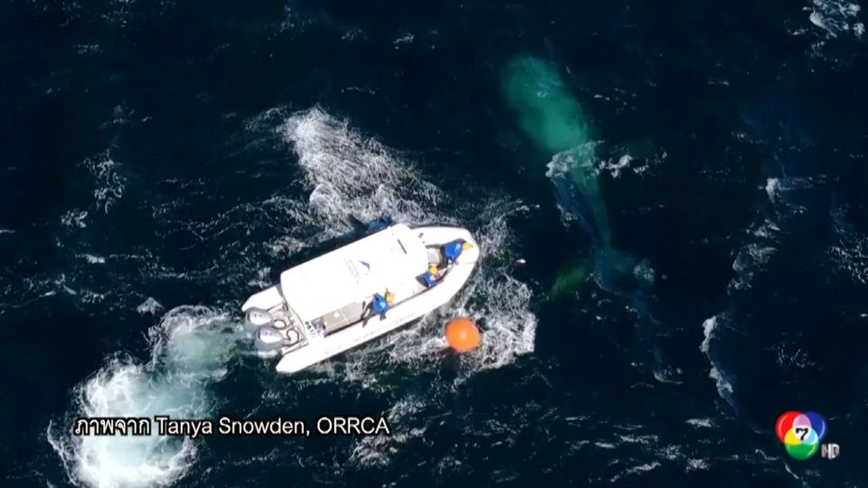 เจ้าหน้าที่กู้ภัยช่วยวาฬหลังค่อมที่ติดอยู่ในอุปกรณ์จับปลา บริเวณนอกชายฝั่งออสเตรเลีย