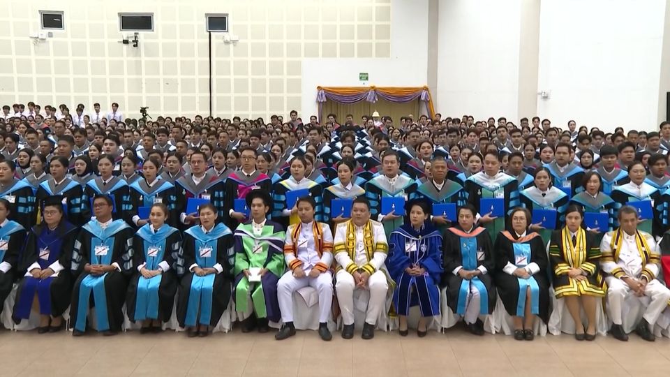 เวลา 09.47 น. วันนี้ พระบาทสมเด็จพระเจ้าอยู่หัว ทรงพระกรุณาโปรดเกล้าโปรดกระหม่อมให้ สมเด็จพระกนิษฐาธิราชเจ้า กรมสมเด็จพระเทพรัตนราชสุดา ฯ สยามบรมราชกุมารี เสด็จพระราชดำเนินแทนพระองค์ไปยังหอประชุมเฉลิมพระเกียรติ มหาวิทยาลัยทักษิณ วิทยาเขตพัทลุง อำเภอป่าพะยอม จังหวัดพัทลุง ในการพระราชทานปริญญาบัตรแก่ผู้สำเร็จการศึกษา ประจำปีการศึกษา 2567 โดยปีนี้ สภามหาวิทยาลัยทักษิณ มีมติเป็นเอกฉันท์ทูลเกล้าทูลกระหม่อมถวายปริญญาปรัชญาดุษฎีบัณฑิตกิตติมศักดิ์ สาขาวิชาวิทยาศาสตร์การกีฬาและการออกกำลังกายแด่สมเด็จพระนางเจ้า ฯ พระบรมราชินี ด้วยทรงมีพระปรีชาสามารถด้านการกีฬา ทรงมีพระวิริยอุตสาหะและทุ่มเทพระวรกายในการฝึกฝน จนทรงสามารถเข้าร่วมการแข่งขันกีฬาหลายประเภท และทูลเกล้าทูลกระหม่อมถวายปริญญาปรัชญาดุษฎีบัณฑิตกิตติมศักดิ์ สาขาวิชาพยาบาลศาสตร์แด่สมเด็จพระกนิษฐาธิราชเจ้า กรมสมเด็จพระเทพรัตนราชสุดา ฯ สยามบรมราชกุมารี ด้วยทรงตระหนักถึงสุขภาพของประชาชนว่าเป็นพื้นฐานสำคัญต่อการพัฒนาประเทศ จึงทรงส่งเสริมสุขภาพอนามัยและคุณภาพชีวิตของประชาชนในทุกถิ่นที่ทรงมีโครงการตามพระราชดำริเพื่อให้เด็กและชุมชนมีโอกาสเข้าถึงบริการด้านสุขภาพ และข้อมูลความรู้ด้านสุขอนามัยและการป้องกันโรคที่ถูกต้องเหมาะสม