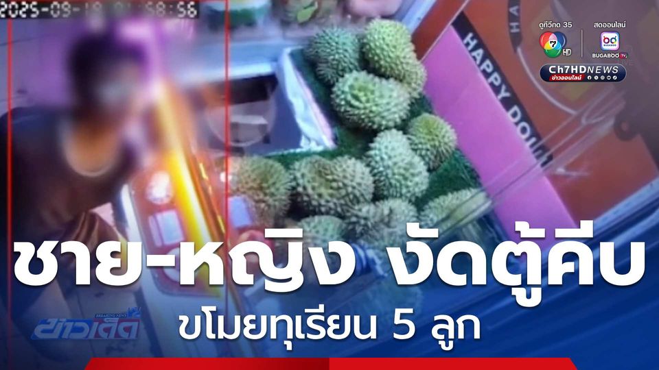 ข่าวเด็ด 7 สี - โจรสามี-ภรรยา งัดตู้คีบหยอดเหรียญ ขโมยทุเรียน 5 ลูก เจ้าของร้านบอกอยากกินก็ขอกันดี ๆ