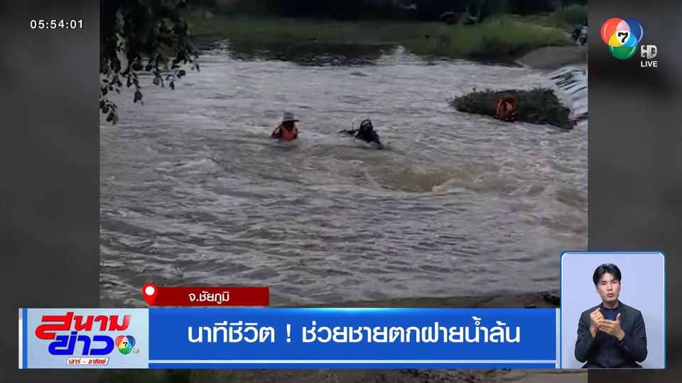ชาวบ้านที่เห็นเหตุการณ์ กระโดดลงไปช่วยชีวิตนายใจเพชร อายุ 63 ปี หลังขี่รถจักรยานยนต์พ่วงข้าง ข้ามฝายน้ำล้นคลองไผ่ บ้านค้าว ตำบลโอโล อำเภอเมืองชัยภูมิ แล้วถูกกระแสน้ำพัดดทั้งรถ ทั้งคนไปด้วยกัน ใช้เวลาประมาณ 1 ชั่วโมง จึงช่วยนายใจเพชรขึ้นมาได้อย่างปลอดภัย