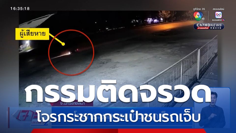 เจาะประเด็นข่าว 7HD - ข่าวนี้ต้องบอกว่า "กรรมติดจรวด" คนร้ายก่อเหตุกระชากกระเป๋าหญิงสาวคนหนึ่งที่จังหวัดนครราชสีมา แต่ขณะกำลังขี่รถรถจักรยานยนต์หลบหนี ไปชนกับรถกระบะกลางสี่แยก สลบคาที่ ถูกจับ