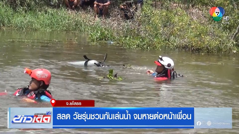 เจ้าหน้าที่ อาสาฯ กู้ชีพ และนักประดาน้ำ เร่งค้นหา นายชาญวิทย์ อายุ 16 ปี ท่ามกลางครอบครัว ที่มาปักหลักดูการค้นหาลูกชายด้วยความโศกเศร้า หลังลงเล่นน้ำกับเพื่อนรุ่นน้องอายุ 14 ปี ในลำห้วยบริเวณฝายน้ำล้น ในตำบลหนองคู อำเภอเมือง จังหวัดยโสธร และจมหายไปต่อหน้าเพื่อน ซึ่งเจ้าหน้าที่ ใช้เวลาประมาณ 10 นาที จึงพบร่าง นายชาญวิทย์ และนำขึ้นมาได้