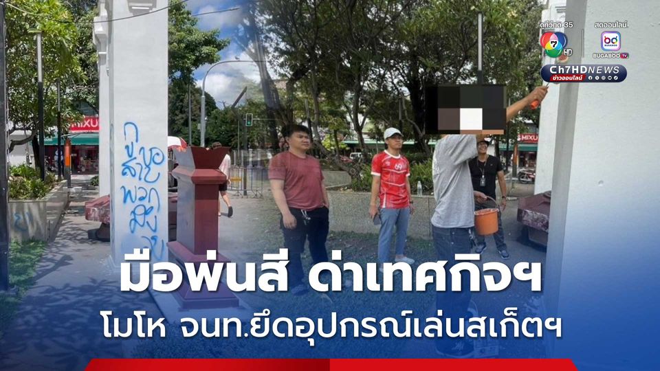จับแล้วมือพ่นสี ด่าเทศกิจฯ บริเวณลานอนุสาวรีย์สามกษัตริย์ จ.เชียงใหม่ สารภาพ โมโหที่ เจ้าหน้าที่เทศกิจยึดอุปกรณ์เล่นสเก็ตบอร์ด ที่ทิ้งไว้บริเวณลานอนุสาวรีย์ฯ ไป ขณะที่ ตำรวจ ให้ผู้ก่อเหตุ ไปซื้ออุปกรณ์มาทำความสะอาดและทาสีให้อยู่ในสภาพเดิม