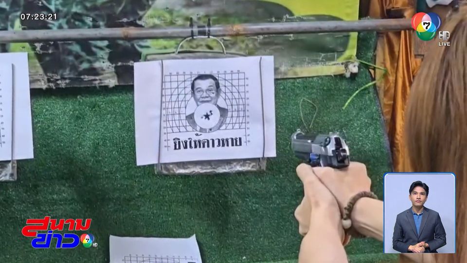 สนามข่าว 7 สี - ฮือฮา ! งานประจำปีในพื้นที่จังหวัดนครราชสีมา จัดบูธยิงปืน โดยใช้เป้าเป็นใบหน้าของ "สมเด็จฯ ฮุน เซน" เรียกลูกค้า