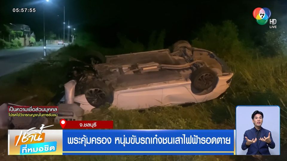 เช้านี้ที่หมอชิต - หนุ่มขับรถเก๋งเสียหลักชนเสาไฟฟ้ารถตีลังกา ล้อชี้ฟ้าแต่คนขับรถเก๋งและผู้โดยสารรอดตาย ซึ่งเขาเชื่อว่า สาเหตุที่รอดตายเพราะสิ่งนี้