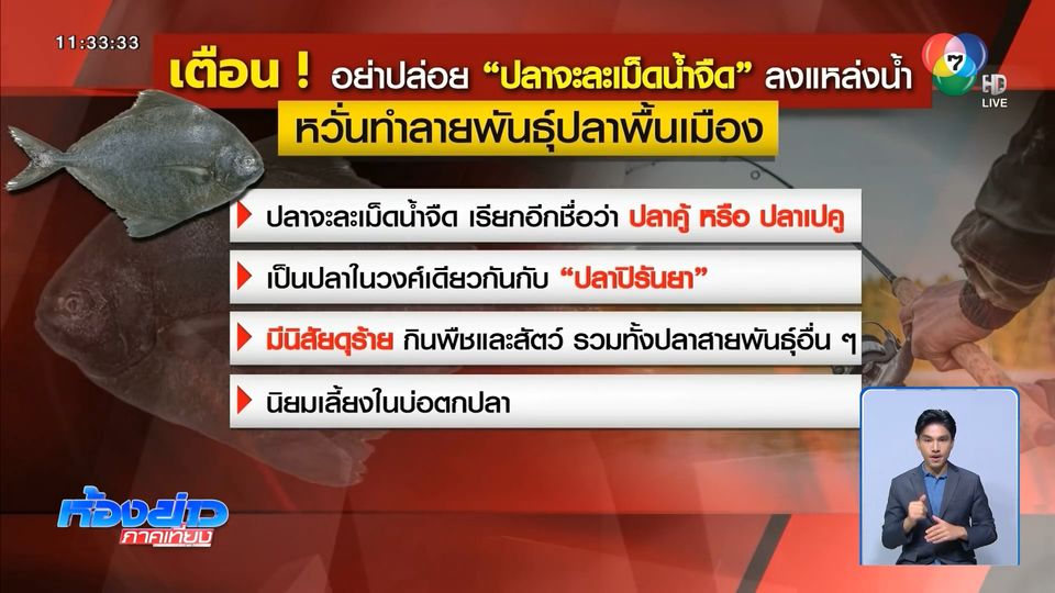 ห้องข่าวภาคเที่ยง - ปลาจะละเม็ดน้ำจืดดุร้าย พุ่งตัวออกมากัดนิ้วคนเป็นแผล ชาวอุดรธานี เล่าตำนาน ปลาผี ปู่ตาเลี้ยงไว้ ไม่มีใครกล้าจับไปทำอาหาร