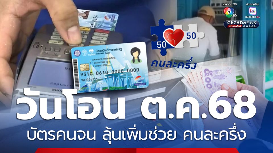 บัตรคนจน งวดเดือนตุลาคม 2568 เช็กวันเงินเข้า ยังได้รับโอนช่วยต่อเนื่อง ลุ้นกลุ่มบัตรสวัสดิการรับเพิ่ม " คนละครึ่ง 2568 "