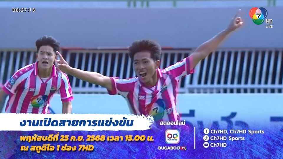 สนามข่าวกีฬา - ลุ้นไปพร้อมกัน กับงานเปิดตัวสายการแข่งขัน ฟุตบอลนักเรียน 7 คน แชมป์กีฬา 7HD แชมเปียนคัพ 2025 วันพฤหัสบดีที่ 25 กันยายนนี้ เวลา 15.00 น.เป็นต้นไป ที่สตูดิโอ 1 ช่อง 7HD