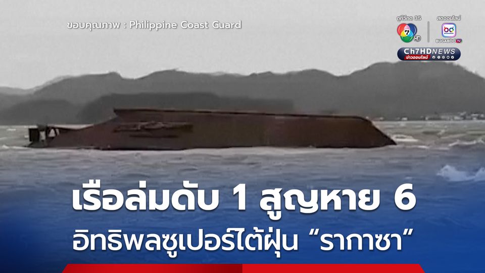 อิทธิพลซูเปอร์ไต้ฝุ่น "รากาซา" หลังเคลื่อนตัวขึ้นฝั่งฟิลิปปินส์ ส่งผลให้เรือประมงล่มกลางทะเล ดับอย่างน้อย 1 คน และยังสูญหายอีก 6 คน