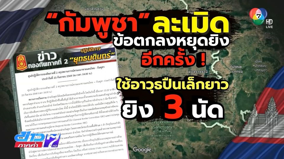 ข่าวภาคค่ำ - กองทัพภาคที่ 2 พบเหตุทหารกัมพูชายิงปืน แนวชายแดนจังหวัดศรีสะเกษ ทำผิดข้อตกลงการประชุม GBC ที่ระบุให้หยุดยิง ประชาชนอพยพออกจากบ้านเรือน ห่วงไม่ปลอดภัย ขณะที่กองทัพภาคที่ 2 เตรียมความพร้อมปกป้องอธิปไตย