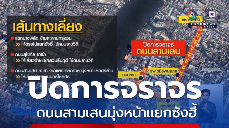 ศูนย์ควบคุมและสั่งการจราจร กองบัญชาการตำรวจนครบาล จึงปิดการจราจรบนถนนสามเสน ตั้งแต่แยกศรีย่าน มุ่งหน้าแยกซังฮี้ และถนนขาว บางส่วน หากผู้ป่วย หรือ รถพยาบาลที่มุ่งหน้าจากลงสะพานซังฮี้ ขาเข้า มาจากฝั่งปิ่นเกล้า แนะนำให้เลี้ยวซ้ายเข้าสู่ถนนขาว และเข้าสู่ถนนสุโขทัย จากนั้นจึงเข้าโรงพยาบาล ส่วนคนที่มาจากฝั่งปิ่นเกล้า โดยลงสะพานซังฮี้ ก็ใช้ถนนเลียบวังสุโขทัย มุ่งหน้าตรงไปอนุสาวรีย์ชัยสมรภูมิได้ตามปกติ แต่การจราจรอาจหนาแน่น