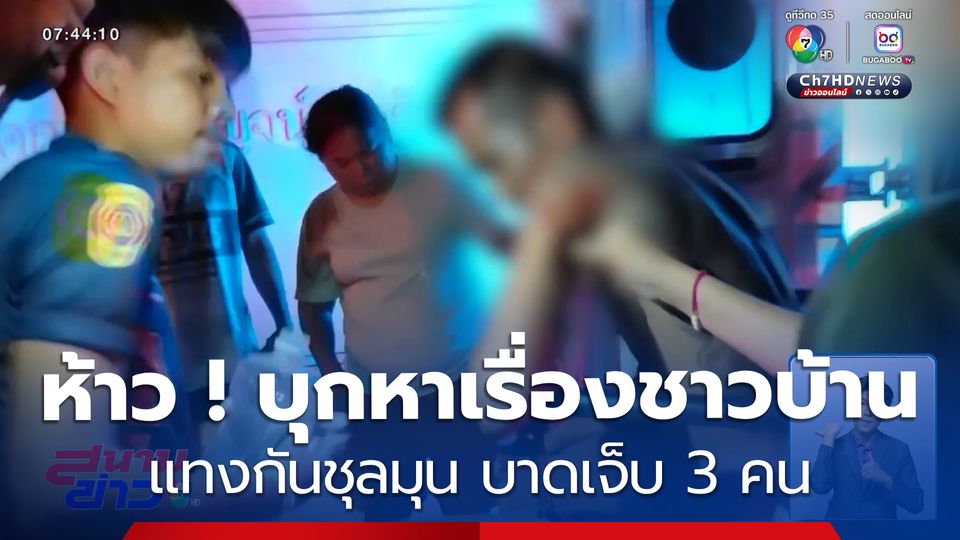 สนามข่าว 7 สี - หนุ่มเมาแล้วห้าว ลืมตาย ! บุกหาเรื่องทำร้ายชาวบ้านที่อยู่ใกล้กัน ระหว่างเกิดเหตุมีญาติของผู้ถูกทำร้าย พยายามเข้ามาห้าม เกิดเหตุชุลมุน เป็นเหตุให้มีคนถูกมีดแทง บาดเจ็บ 3 คน
