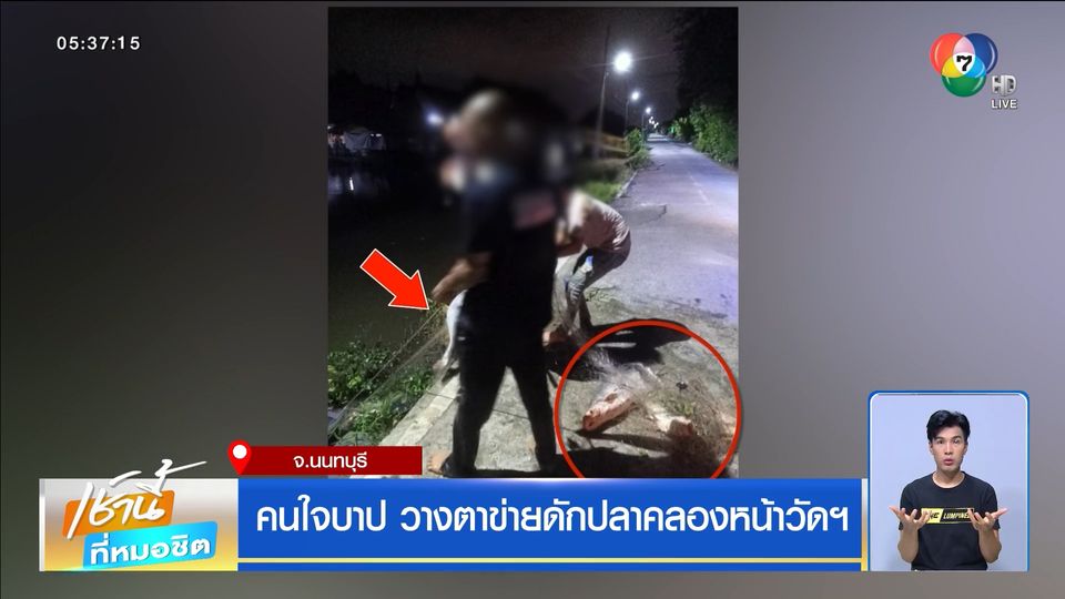 เช้านี้ที่หมอชิต - ที่จังหวัดนนทบุรี ขนาดเขตอภัยทานยังไม่เว้น กลุ่มคนบาปแอบลงตาข่ายดักปลาคลองหน้าวัดกลางดึก ชาวบ้านไปเตือนไม่ฟัง