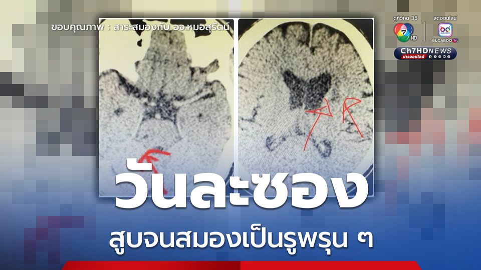 หมดยุคสูบบุหรี่ หมอยกเคสสมองเป็นรูพรุน ผลจากการสูบวันละซอง จากเส้นเลือดสมองอุดตัน สะสมไปเรื่อย ๆ จนสมองพรุนเหมืองฟองน้ำ อ่อนแรงครึ่งซีก ไม่เลิกก็เตรียมใจไว้ รูในสมอง ไม่ใช่รูในฟันที่อุดได้