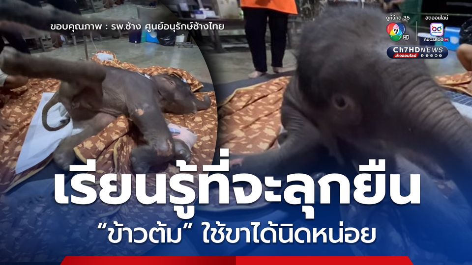 หนทางยังอีกยาวไกล อัปเดตอาการลูกช้าง กายภาพบำบัดด้วยเครื่องอัลตราซาวด์ ”ข้าวต้ม” ใช้ขาได้นิดหน่อย เรียนรู้ที่จะลุกยืน ยังต้องเฝ้าระวังเรื่องภาวะแทรกซ้อน