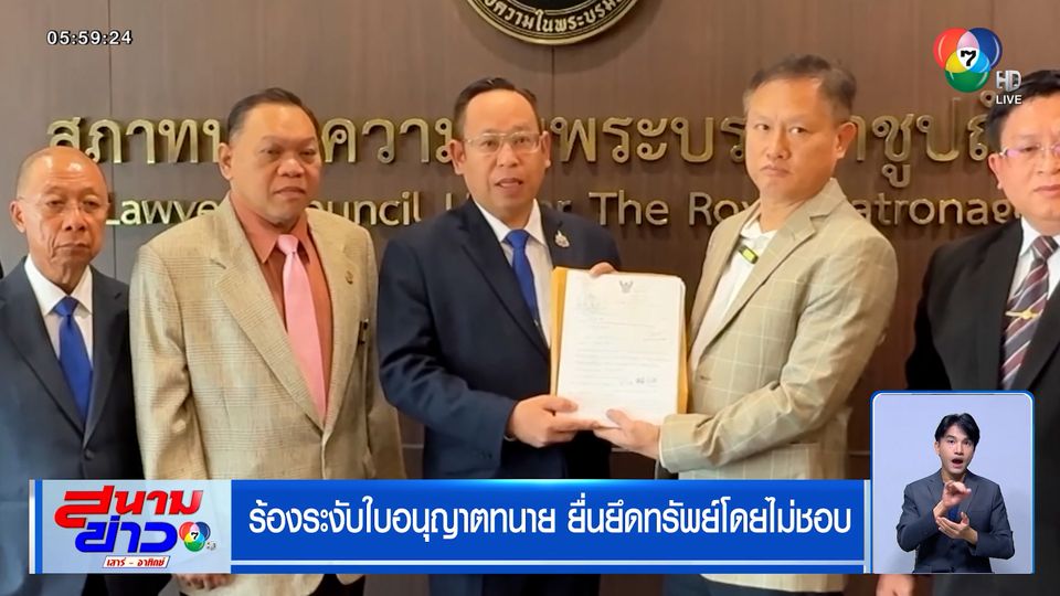 สนามข่าวเสาร์-อาทิตย์ - ครอบครัวผู้เสียหาย มอบตัวแทนร้องสภาทนายความ พิจารณาพักใบอนุญาตกลุ่มทนายที่ปลอมแปลงสัญญา เพื่อนำไปสู่การยึดทรัพย์ผู้เสียหายกว่า 57 ล้านบาท