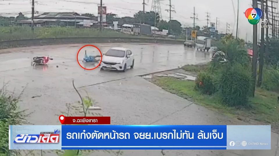 ข่าวเด็ด 7 สี - ช่วงฝนตก ถนนลื่น ผู้ขับขี่ต้องเพิ่มความระมัดระวัง หนุ่มใหญ่ขี่รถจักรยานยนต์มาอย่างไว เจอรถเก๋งตัดหน้า เกิดอะไรขึ้น