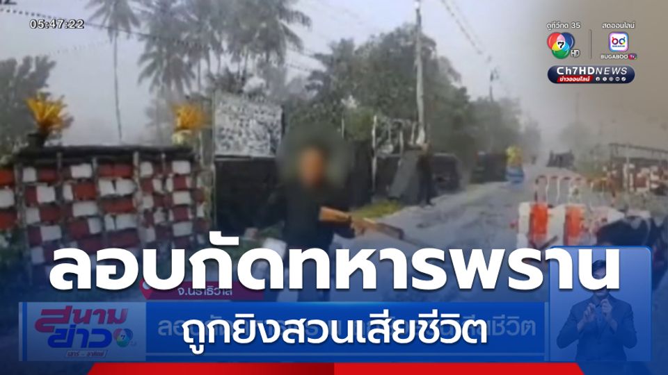 สนามข่าวเสาร์-อาทิตย์ - คนร้ายขี่รถจักรยานยนต์ วนมายิงทหารพราน 2 รอบ ก่อนเจอยิงสวน รีบทิ้งรถหนี สุดท้ายเสียชีวิต