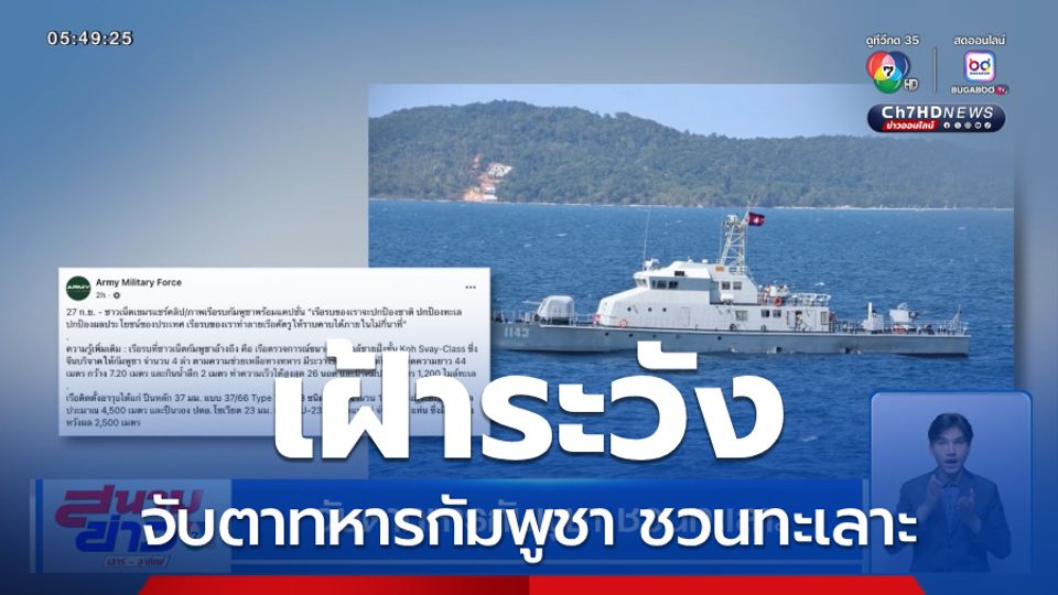 เมื่อวานนี้ มีการเผยภาพเรือรบกัมพูชา ที่ติดตั้ง ปืนชนิดแท่นคู่ มีระยะยิงไกล 4,500 เมตร พร้อมโพสต์ข้อความ "เรือรบของเราจะปกป้องชาติ ปกป้องทะเล ปกป้องผลประโยชน์ของประเทศ เรือรบของเราทำลายเรือศัตรูให้ราบคาบได้ภายในไม่กี่นาที"