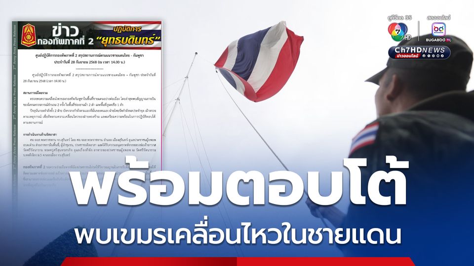 ศูนย์ปฏิบัติการกองทัพภาคที่ 2 สรุปสถานการณ์ตามแนวชายแดนไทย-กัมพูชา ประจำวันที่ 28 ก.ย.68 (เวลา 14.00 น.) สถานการณ์โดยรวม ตรวจพบความเคลื่อนไหวของกองทัพกัมพูชา ในพื้นที่ชายแดนอย่างต่อเนื่อง โดยล่าสุดพบสัญญาณการบินของโดรนตรวจการณ์ จำนวน 2 ครั้ง พื้นที่ ช่องอานม้า 2 ลำ และพื้นที่ภูมะเขือ 1 ลำ ปัจจุบันกองกำลังทั้ง 2 ฝ่าย ยังคงวางกำลังตามแนวที่มั่นของตนเอง ฝ่ายไทยจัดกำลังพลประจำจุดเฝ้าตรวจตามเหตุการณ์ เพื่อติดตามความเคลื่อนไหวของฝ่ายตรงข้าม และเตรียม ความพร้อมในการปฏิบัติตอบโต้ตามสถานการณ์