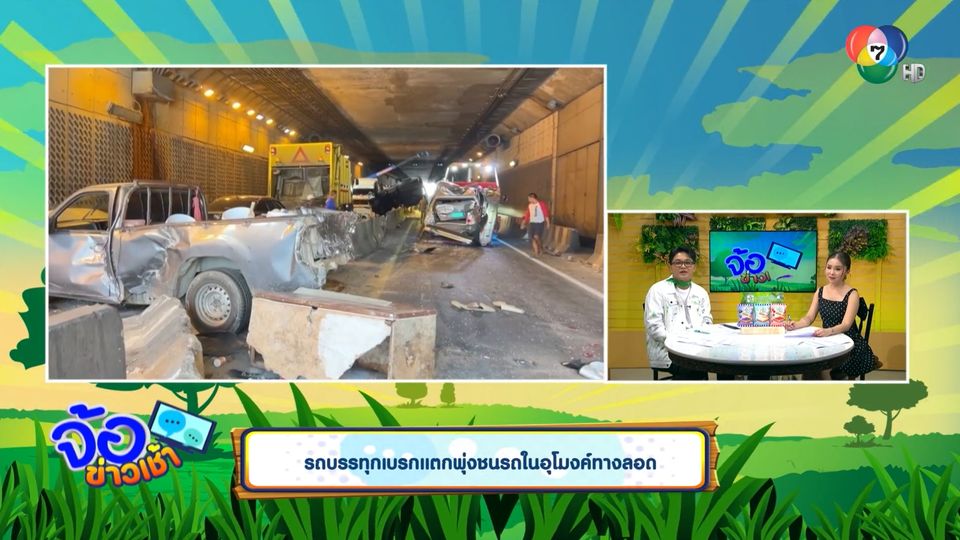 จ้อข่าวเช้า - รถบรรทุกเบรกแตกพุ่งชนรถในอุโมงค์ทางลอด