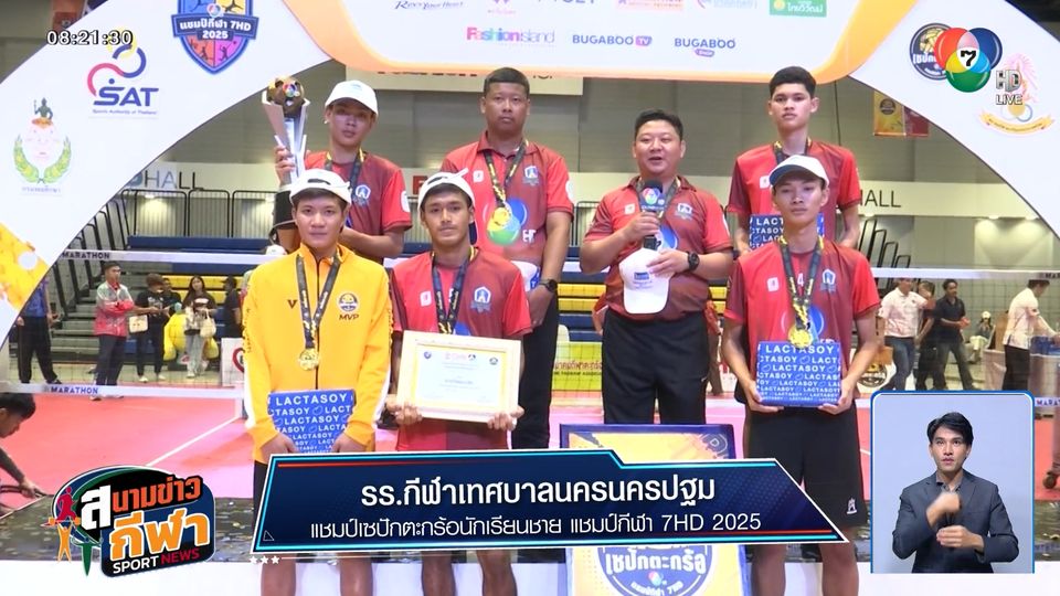 สนามข่าวกีฬา - เซปักตะกร้อ นักเรียนชาย แชมป์กีฬา 7HD 2025 โรงเรียนกีฬาเทศบาลนครนครปฐม เกือบหลับ แต่พลิกกลับมาเอาชนะ โรงเรียนท่าขอนยางพิทยาคม คว้าแชมป์สมัยแรก