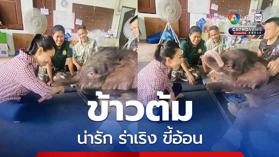 กินนมวันละ 5 กระป๋อง ลูกช้างข้าวต้ม ตัวโตขึ้นเริ่มมีปัญหาแผลกดทับ แผลเกิดในช่วงแม่พยายามลากพาให้เดิน เตรียมพร้อมรอกช่วยพยุง นั่งร้าน ที่นอนยางพารา กัญจนา ศิลปอาชา ยืนยันน้องน่ารักมาก ร่าเริง ขี้อ้อน อยากทักทายกับคน