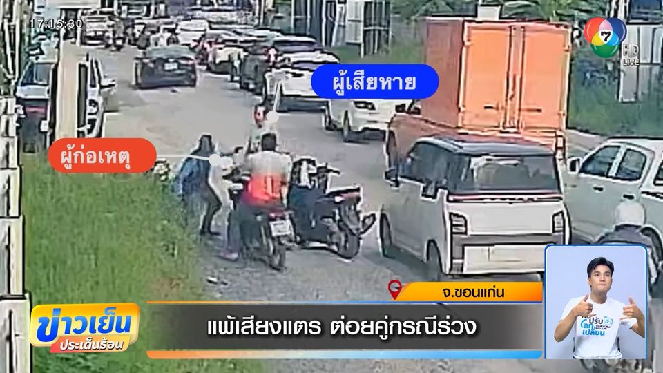 ข่าวเย็นประเด็นร้อน - ไปที่ขอนแก่น คนเราส่วนใหญ่ชอบแพ้คำว่ารัก ก็มักจะเสียอาการ แต่หนุ่มคนนี้กลับแพ้เสียงแตร แล้วหัวร้อนตามทำร้ายคู่กรณี