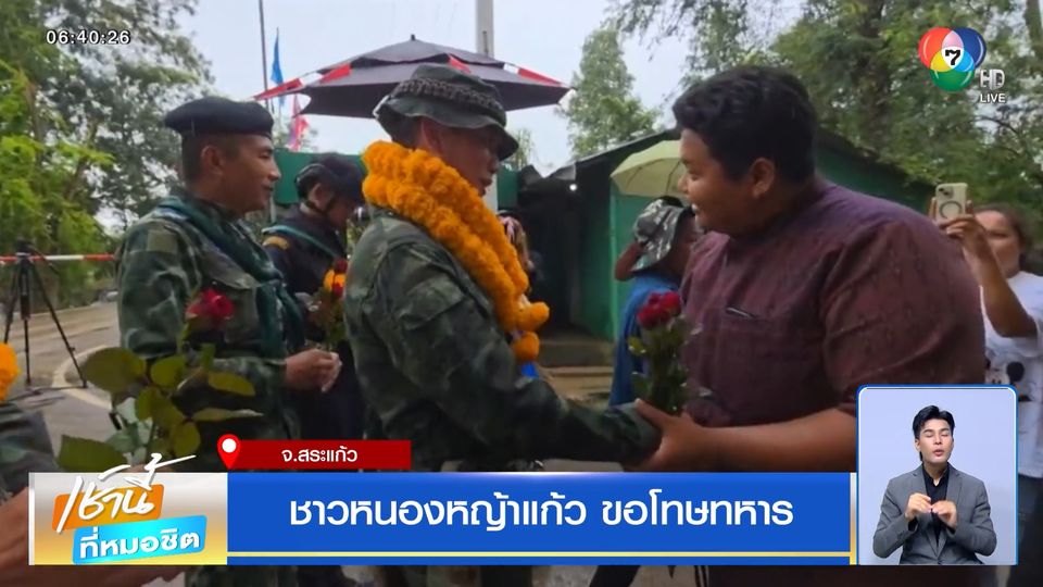 เช้านี้ที่หมอชิต - เมื่อวาน ชาวบ้านหนองหญ้าแก้ว นำดอกดาวเรือง และกุหลาบไปขอโทษทหาร และยืนยันจะไม่มีการปิดครัว ตามที่เป็นข่าวก่อนหน้านี้