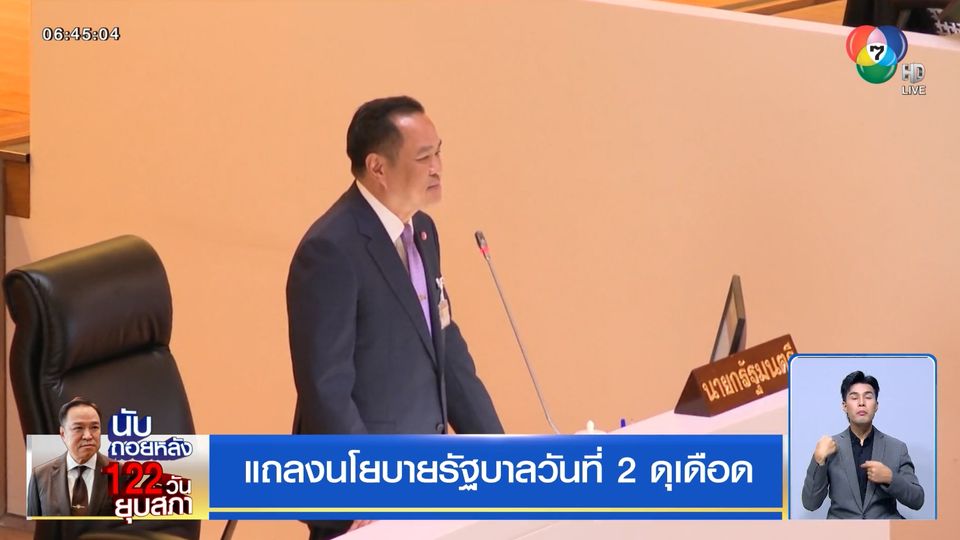 จากนั้น "นายกฯ อนุทิน" ได้กล่าวขอบคุณประธานรัฐสภา และสมาชิกรัฐสภา พร้อมย้ำว่าอีก 4 เดือนจะยุบสภา และอีกไม่เกิน 2 เดือนจะได้เลือกตั้ง รับรองว่าไม่ใช่รัฐบาลเป็ดง่อย