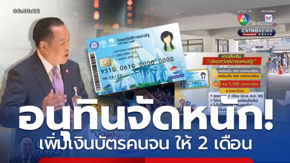 เพิ่มเงินบัตรสวัสดิการแห่งรัฐ 850 บาท